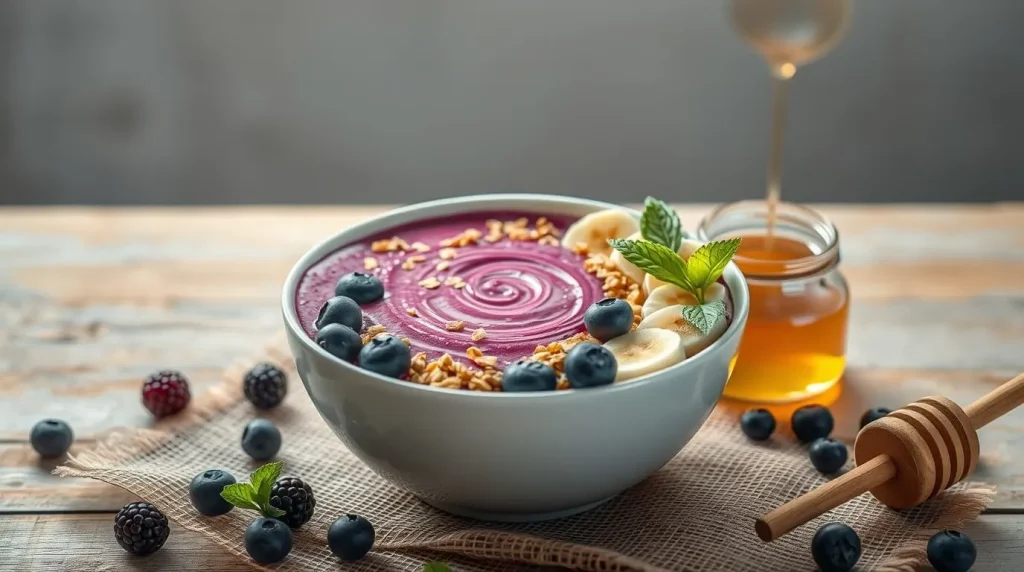 This protein-packed acai bowl contains approximately 30-40 grams of protein, depending on the specific brands and amounts of Greek yogurt and protein powder used. It’s a perfect option for a nutritious breakfast, post-workout meal, or healthy snack.